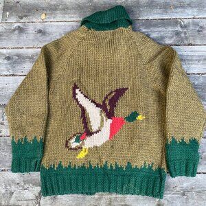 Vintage 1958 Green Goose Cowichan Handmade Woven Wool Jacket Canvas Large Canada