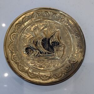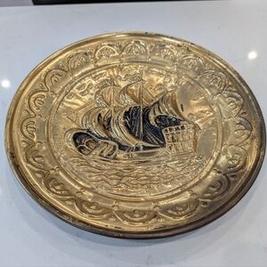 Vintage 1960 wall ship plates brass made in England