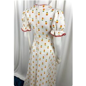 Vintage 1960’s 1970’s Floral Maxi Dress in Dusty White with Red Smocking • Peasant Short Sleeve • Ruffle Trim • A-Line • Gown • Custom
