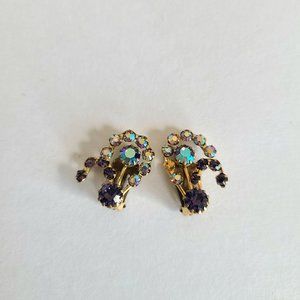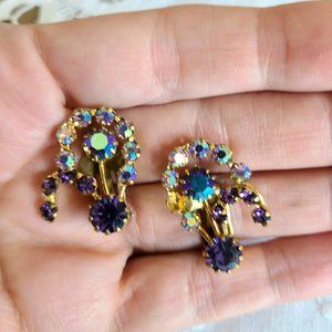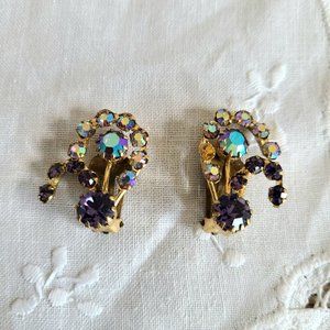 Vintage 1960s Aurora Borealis clip on earrings. Made in Austria.