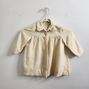 Vintage 1960s Beige Velvet Floral Embroidered Jacket Coat 60s Cottagecore mcm