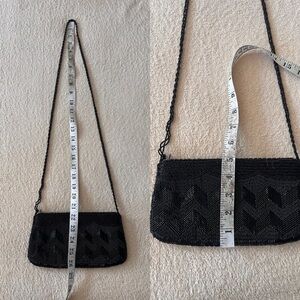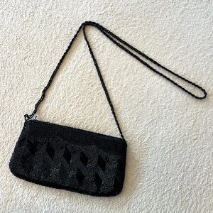 Vintage 60s Black Beaded Zigzag Shoulder Bag
