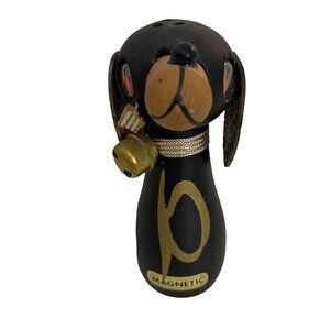 Vintage 1960s Black Wooden Dog Salt & Pepper Shakers – Side‑Magnetic – MCM
