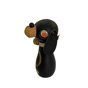 Charming pair of vintage 1960s black wooden puppy dog salt & pepper shakers with magnets on their sides so they “stick together” when displayed. A whimsical example of mid‑century novelty kitchenware — perfect for collectors, retro kitchens, or as a unique gift for dog lovers.