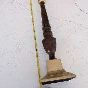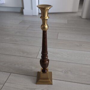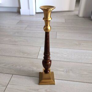 Vintage 1960's Brass Solid Wood Large Pillar Regency Candlestick