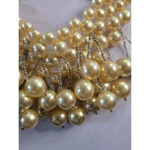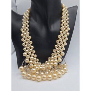 An exquisitely fine, lustrous pearl statement necklace with layers of cascading pearls can be worn as a choker or a bib necklace. It would look fabulous with a formal dress or even a casual shirt and jeans. STUNNING is an understatement.