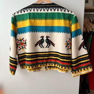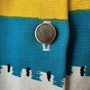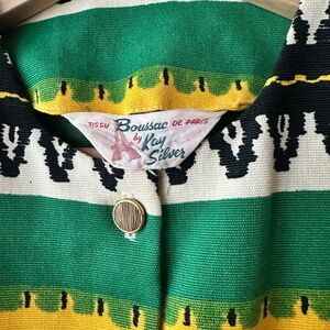 This jacket is so special but I don’t reach for it anymore. In absolute perfect condition. Has the most beautiful buttons. Print designed in Corfu. 3/4 Sleeves and cropped cut, which gives it a modern cut.
