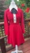 Vintage Gay Gibson bright red 1960s mod dress with an off-white pointed collar, contrast placket, and removable polka-dot bow. Long sleeves, fitted waist, and an A-line skirt—very classic mid-century styling. Union-made (ILGWU label), WPL 3869. 100% polyester, no stretch in the waist.