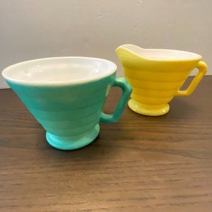 Sugar Bowl is Aqua Green and Creamer is yellow.