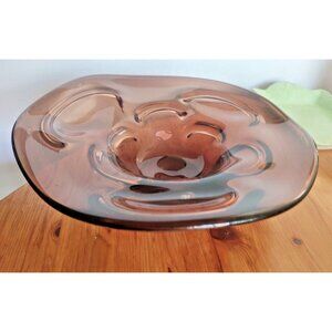 Vintage 1960s Mid Century Modern Amber Hand Blown Art Glass Console 11" x 10"