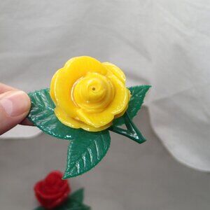 Vintage 1960s Plastic Rare Rose Salt and Pepper Shakers Flower Matching Pair