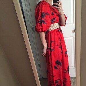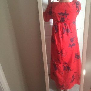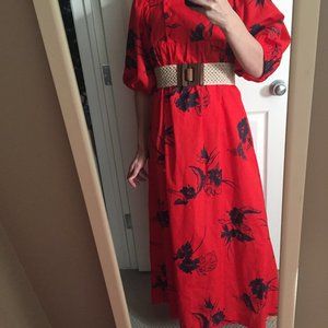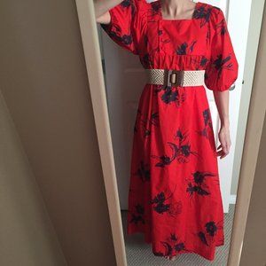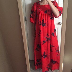 Vintage Hilo Hattie's Hawaii Red Floral Maxi Dress with 4 buttons.