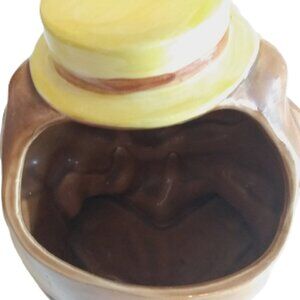 Vintage 1960's, Ceramic, Relpo Lion Planter. Cute Planter Has Big Eyes. Wearing A Yellow Hat and Yellow Shoes. A Very Small Chip or Extra Piece Of Ceramic Inside Foot Area, I Can't Really Tell. More Of A Feel Than Visual Observation(last pic). Other Than That In Very Nice, Pre-Owned, Vintage Condition. No Cracks or Repairs.