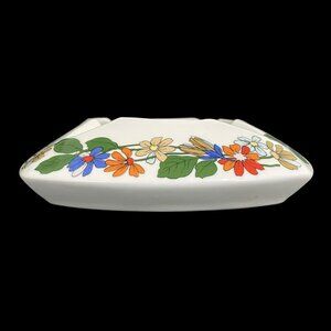 Vintage 1960s Schmidt Brazil porcelain cigar ashtray featuring a groovy floral pattern in a square shape.