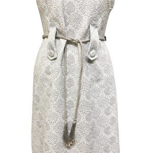 Vintage 1960s Silver over White Sheath Style Party Cocktail Formal Dress