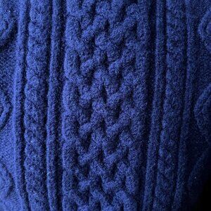 Amazing true vintage Ski-Doo brand sweater and matching dickie, in a deep blue cable knit, extremely thick and warm. 36" bust and 36" waist. Front pockets. In very good condition. Looks to be from the 60s, possibly earlier. Not sure if this is a wool blend or fully synthetic, but it is not scratchy - it is more thick and soft.