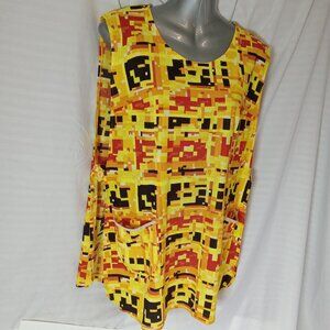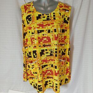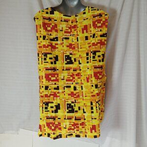 Vintage 1960s Smock Apron Mid Century Geometric Yellow Orange Handmade XL
