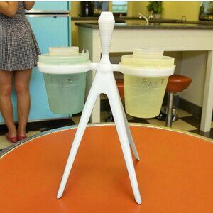 Vintage 1960s Tupperware Plastic Salt and Pepper with Stand