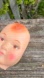 Pair of vintage baby doll head rubber faces with orange hair and pink cheeks. Unique collectible items. For creepy arts and crafts.