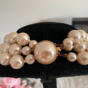 Vintage 1960s Twisted Strand Faux Pearl Necklace, 3 Strands, Pearl Button Clasp