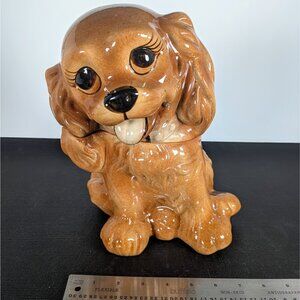 Vintage 1960s USA Pottery Handpainted Cocker Spaniel Cookie Treat Jar