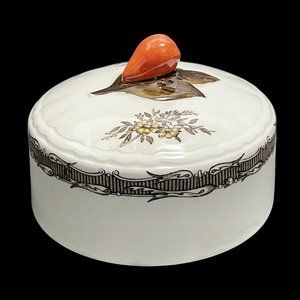 This vintage English ironstone covered butter dish in the Rosedale pattern by Wood & Sons is the picture of country cottage charm. Hand engraved in a delicate pattern of roses, buds and leaves in muted shades of coral, yellow, green and brown. Note the handle on the lid is a charming coral rosebud.