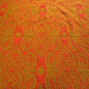 Vintage 1960s bedspread, orange and avocado green pattern, fringed, twin size