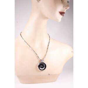 Vintage 1960s chunky spiral necklace, Mexico Sterling silver hypnotic pendant