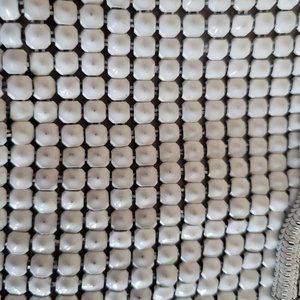 Vintage 1960's pearl cream Glomesh handbag, white metallic mesh
