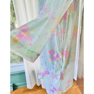 Vintage 1960s peignoir, mint green, blue, pink, orange, pastel floral duster
