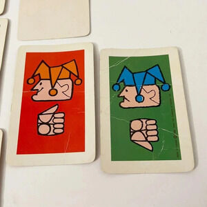 This game is pre-owned and in very used condition. It is very worn. The cards have been counted and are complete. The cards are very creased and worn. Some have tears and stains. The box is very damaged. It has dents, tears and stains. Please see all photos for exact game.