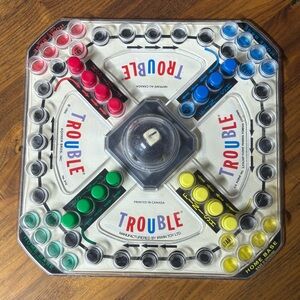 Vintage 1965 Canadian bilingual Trouble board game with classic pop-o-matic bubble, by the Kohner Bros. The bubble still works!