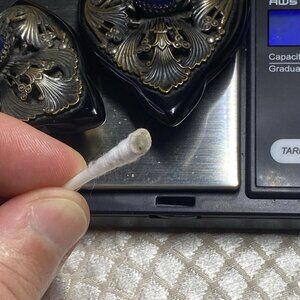Each piece is set with a deep blue galalith (casein) or early Lucite cabochon, a warm and slightly soft early plastic material widely used in regional jewelry as an imitation stone. The cabochon shows a uniform vivid blue glow under direct light and does not react to Simichrome, confirming it is not bakelite.