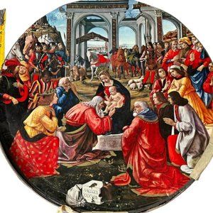Vintage 1966 Springbok Circular Puzzle in the image of 'Adoration of the Magi" by Domenico Ghirlandaio.