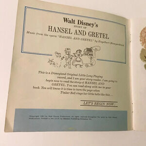 Vintage 1967 Disney Hansel and Gretel 7 Inch Record and Book