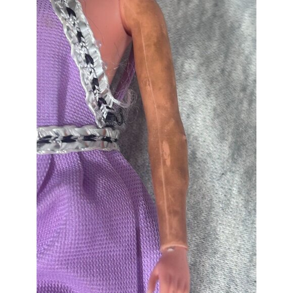 Vintage 1968 Mattel Barbie Doll Brunette Blue Eyes Purple Dress Red Hair