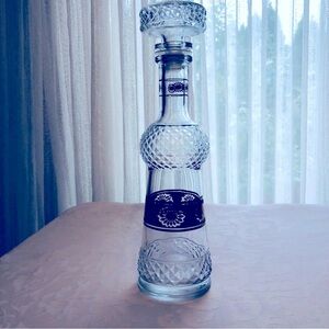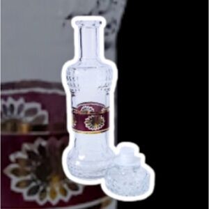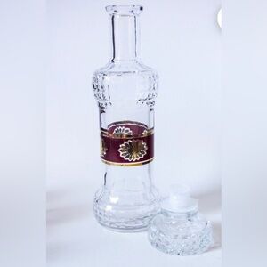 Vintage 1970 Retro Glass Bar Decanter with Burgundy/Gold Flower Band and Stopper