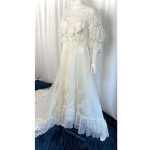 Vintage 1970’s 1980’s Alfred Angelo Lace Wedding Dress • Ruffled - Small