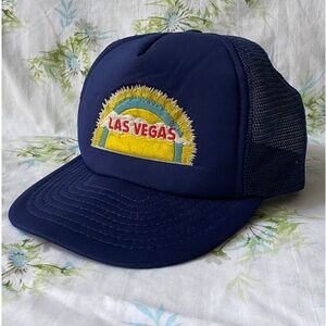 Vintage 1970’s 1980's Las Vegas Trucker Hat - Navy Blue with Sun and Clouds - M