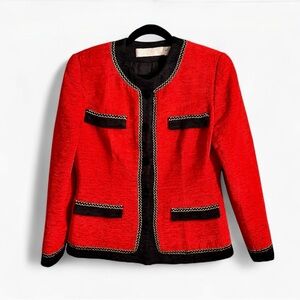 ⭐️ Vintage 1970’s Ann Ciona Red & Black Embellished Fitted Blazer - PTP 19.5