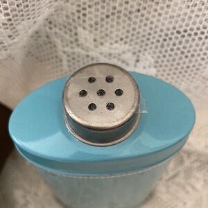 This vintage avon talc tin is so pretty with its baby blue color and old fashioned graphics. This would be so cute as part of a dresser or vanity vignette. In great vintage condition! Please look closer at pics for any wear.