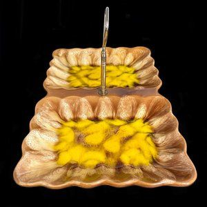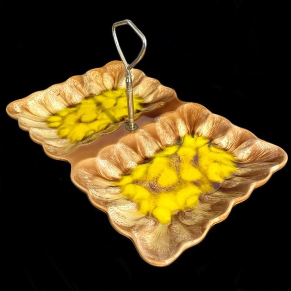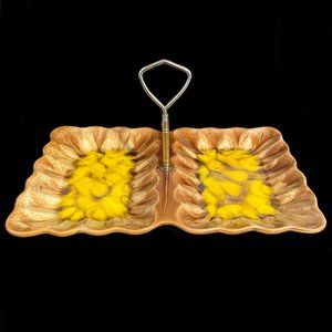 Vintage 1970s Belgo Canadian Pottery Montreal Drip Glaze Ceramic Divided Dish