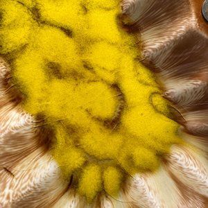 Yellow, tans, browns and white bring this piece together.