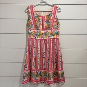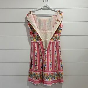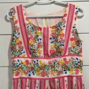 Vintage 1970s Betty Barclay sleeveless floral print dress pleated skirt lined