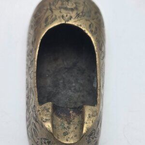 Vintage 1970s Brass Slipper Shoe Ashtray Etched Brass Made in India MCM