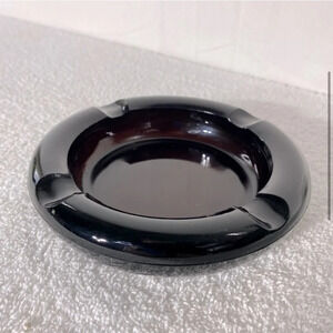 Vintage 1970s Brown Dark Glass Ashtray Trinket Dish Heavy