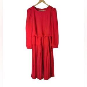 Vintage 1970s Cami Red Long Sleeves Drop-waist Pleated Midi Dress Womens Size 10