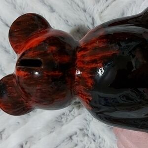 Piggy Bank Orange & Black Teddy Bear Coin Bank Orange Drip Glaze Bear Money Bank Canadian Pottery