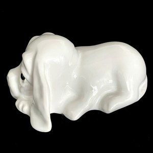 Canadiana Pottery White Puppy Dog with Green Eyes | Sad Hound or Spaniel Pup | Collectables Series #304 | Vintage Dogs |