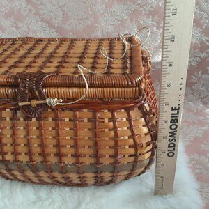 Vintage 1970s Colourful Sewing Box Craft Hobby Storage Wicker Basket, it is in great condition with minor stains inside the lining, but the basket still in beautiful shape.